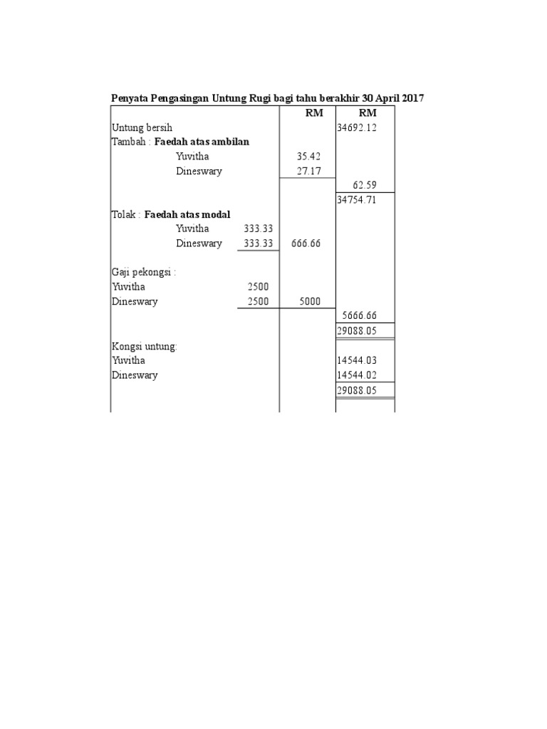 Perkongsian Format Akaun Pengasingan Untung Rugi Pdf